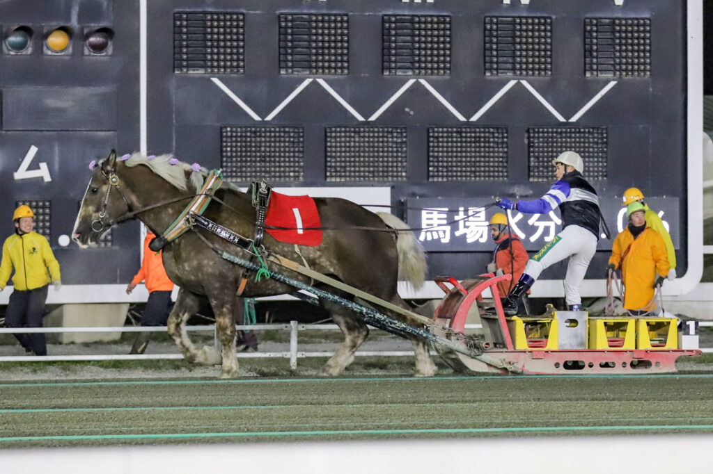 オークス3着、ばんえいプリンセス賞3着、3歳時は上位で活躍していたのですが、4歳に入ってちょっと苦戦しています。格的にはマユヒメさんとほぼ同クラスだったので、ヨシノヒメに勝てたらマユヒメさん出れるかなぁ…と勝手にライバル視していました。今回はちょっと荷物も馬場も重かったようです。渡来騎手が大事に大事にレースを運んでいたように見えました。十分溜めたけど、第2障害が上がり切れず。ただ、前半大事に乗っていたので降りてからはグイグイ歩けていました。最後、良い勢いで歩けている下位入線の馬を見ていると、ばんえい競馬の前半のペースと第2障害が如何に重要なのかということがよくわかります。
