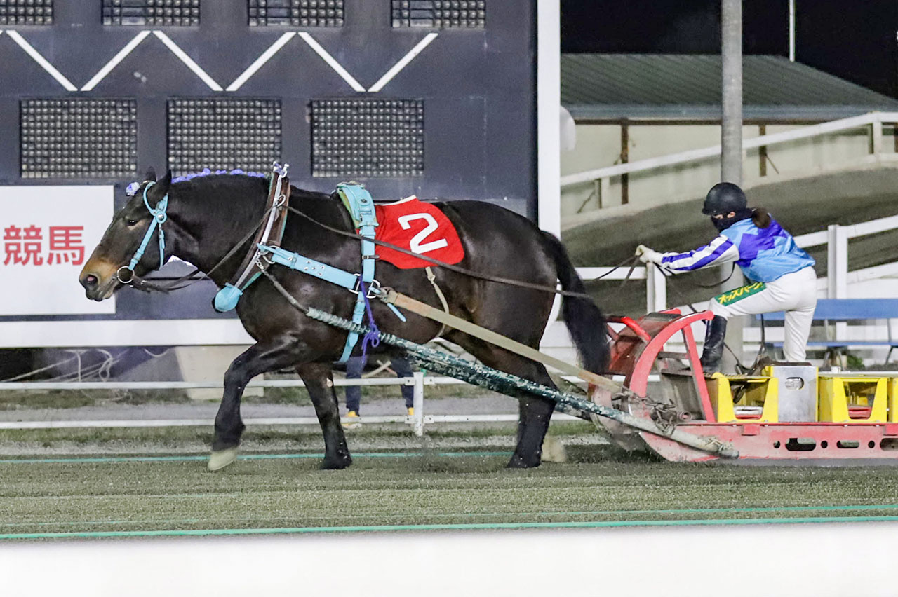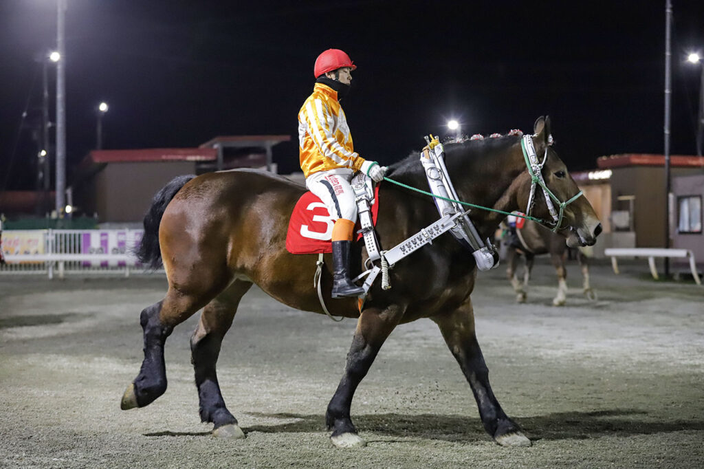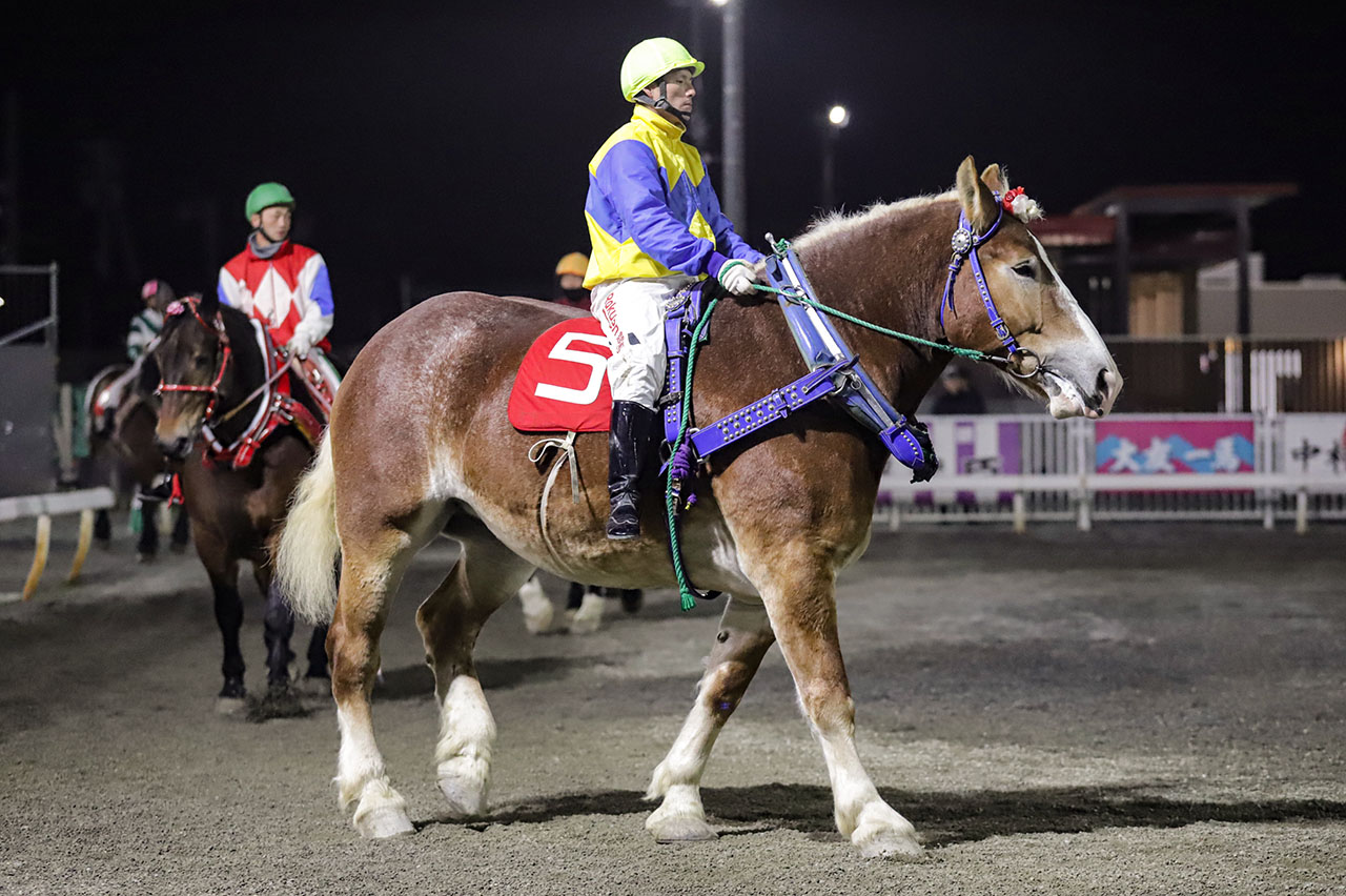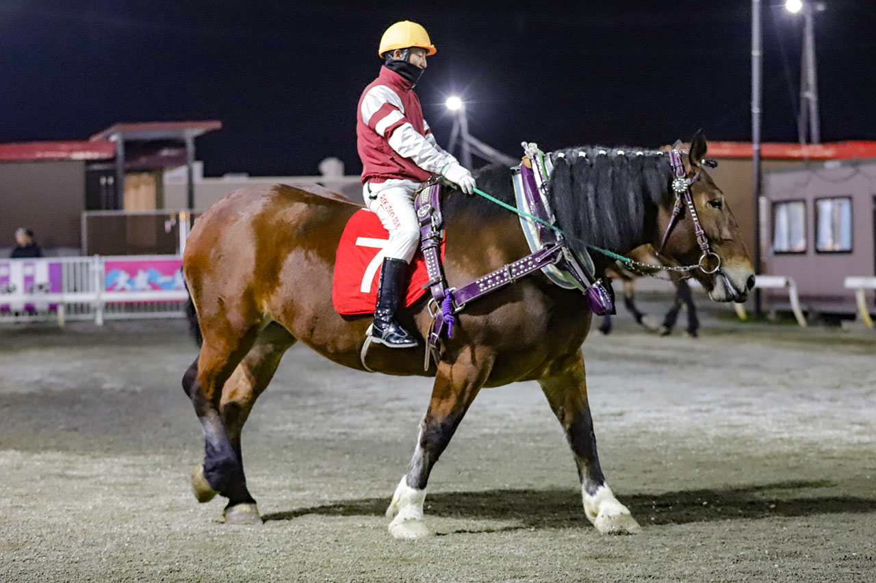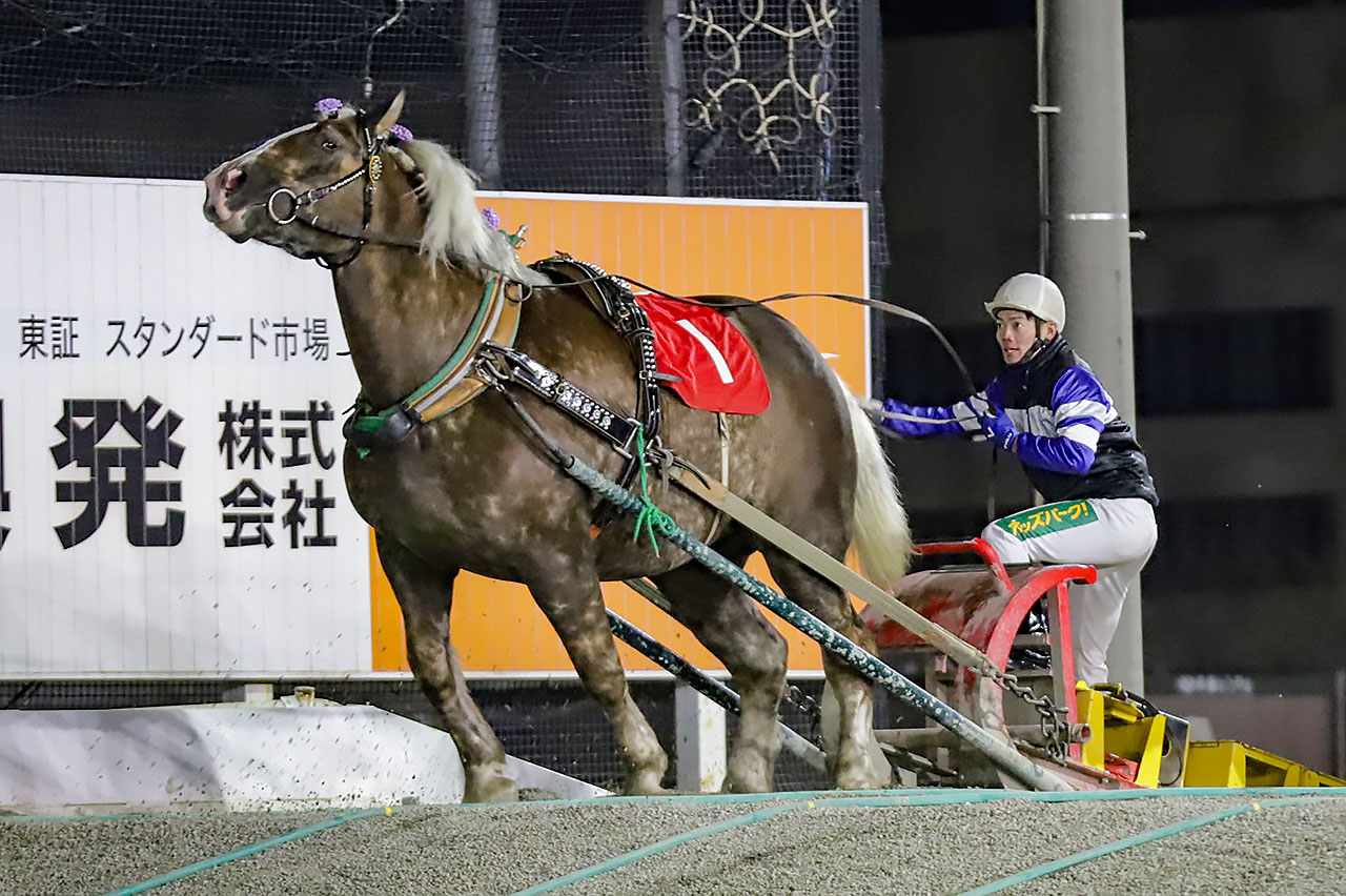 オークス3着、ばんえいプリンセス賞3着、3歳時は上位で活躍していたのですが、4歳に入ってちょっと苦戦しています。格的にはマユヒメさんとほぼ同クラスだったので、ヨシノヒメに勝てたらマユヒメさん出れるかなぁ…と勝手にライバル視していました。今回はちょっと荷物も馬場も重かったようです。渡来騎手が大事に大事にレースを運んでいたように見えました。十分溜めたけど、第2障害が上がり切れず。ただ、前半大事に乗っていたので降りてからはグイグイ歩けていました。最後、良い勢いで歩けている下位入線の馬を見ていると、ばんえい競馬の前半のペースと第2障害が如何に重要なのかということがよくわかります。