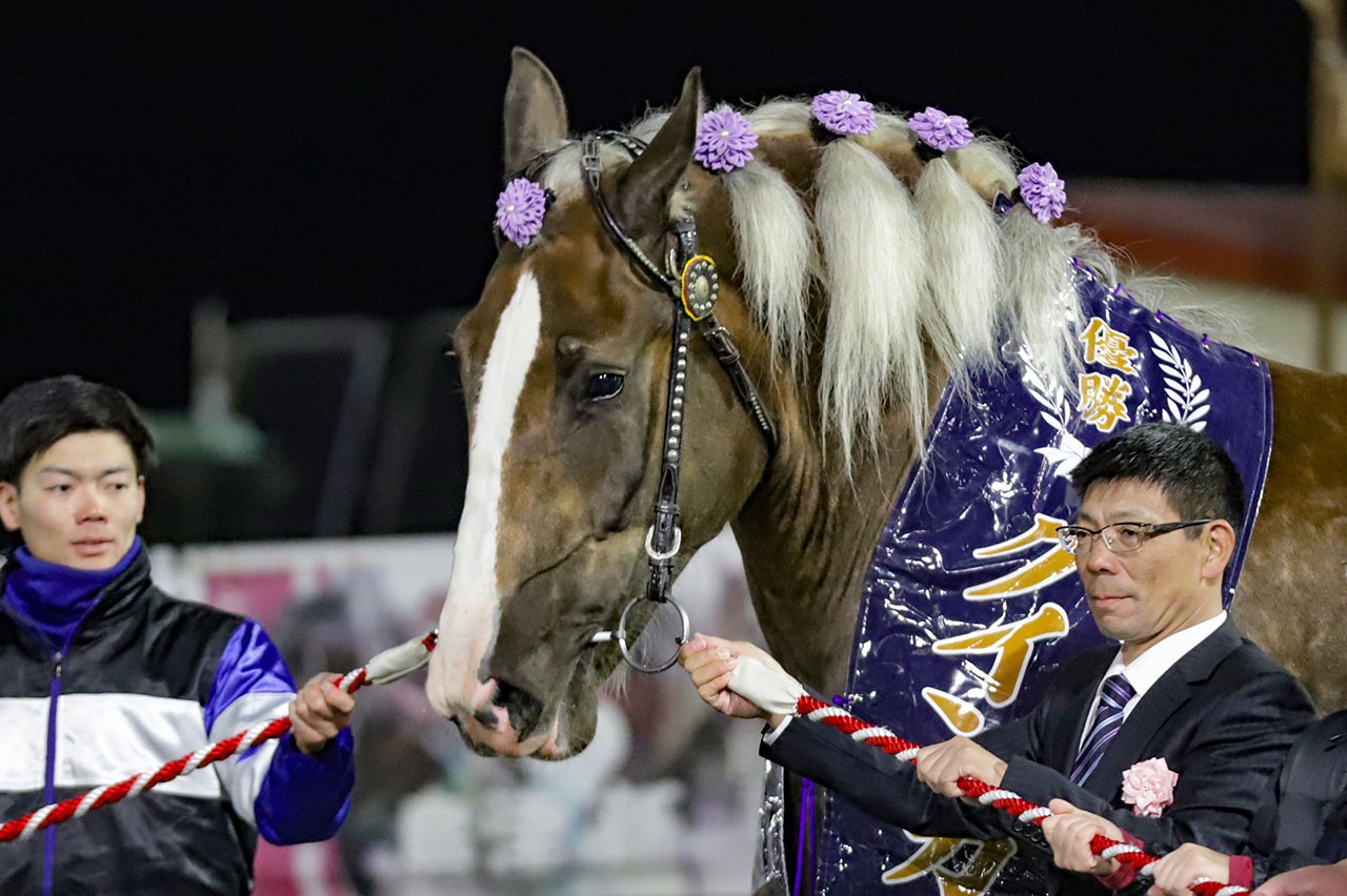 ロータリーハローやヒーターといった冬仕様で、馬場が重くなっていたことも味方したはずです。かかってガンガン行けてしまうほど楽な馬場ではなかったので、かえって落ち着けたのだと思います。障害は上手ですし下りてからしぶとく歩ける馬なので、自他ともにペースが落ち着く、重たい馬場や重量を積まれたレースの方が、カフカはより強さを発揮できるのかもしれません。1月3日の4歳世代最強馬決定戦、高重量の天馬賞でも期待が持てます。